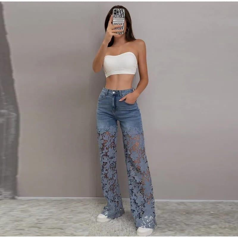 Step into style with our Floral Cutwork Denim Jeans — where bold meets beautiful. Featuring intricate floral lace detailing that adds a peek-a-boo effect, these jeans are designed to turn heads and elevate your everyday look.