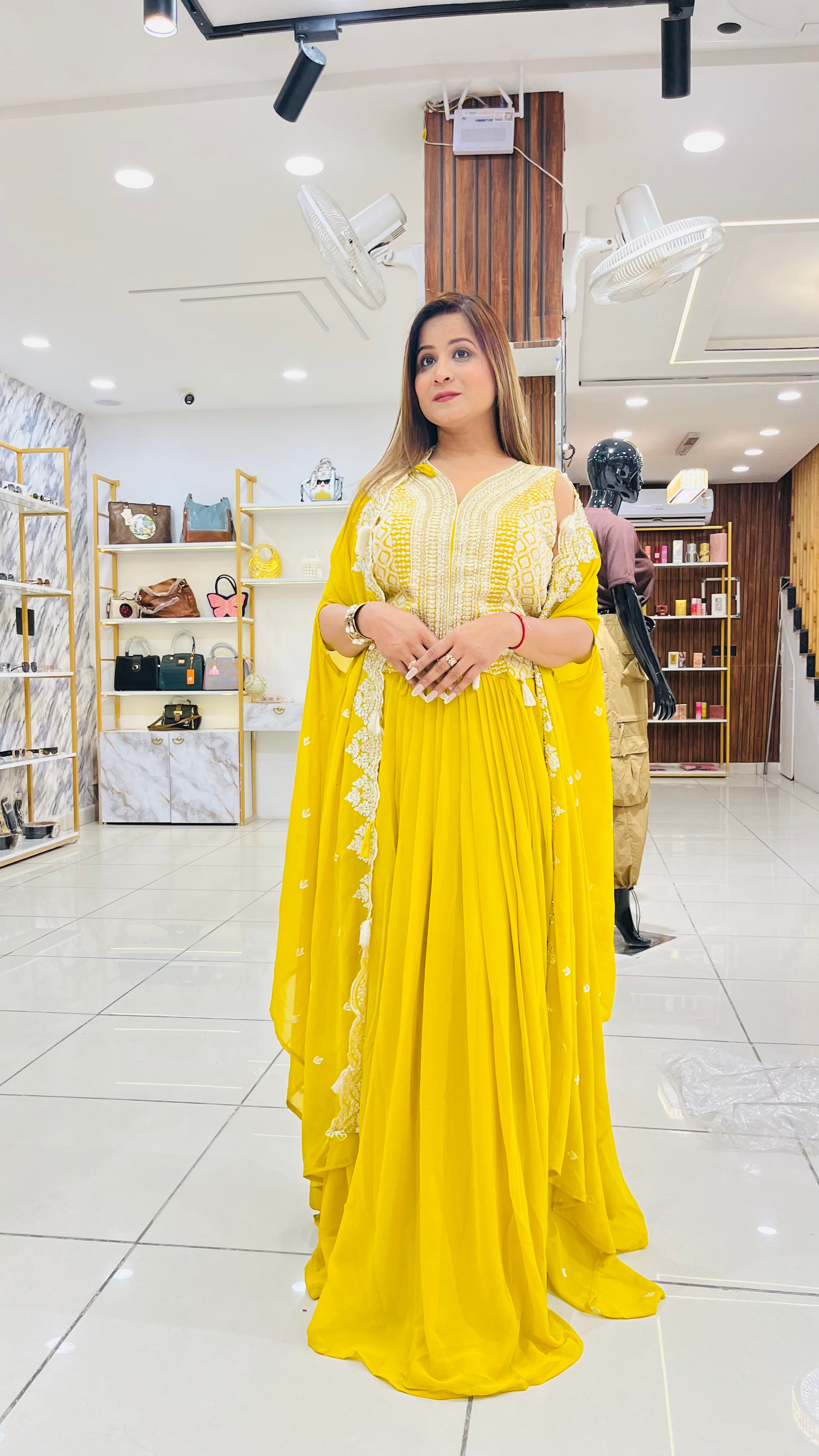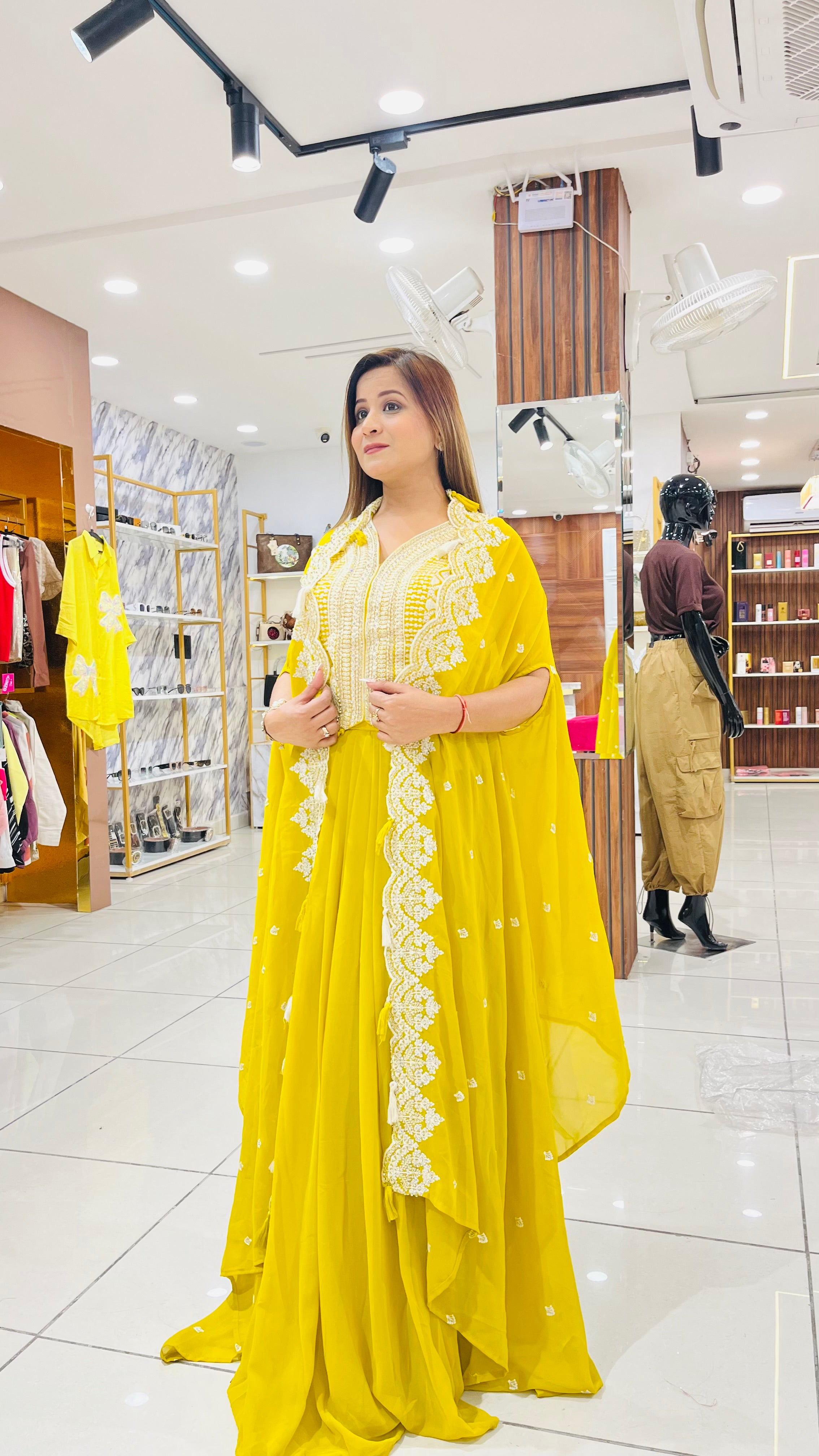 3 PIECE SET WITH CAPE IN LAKHNAVI EMBROIDERY