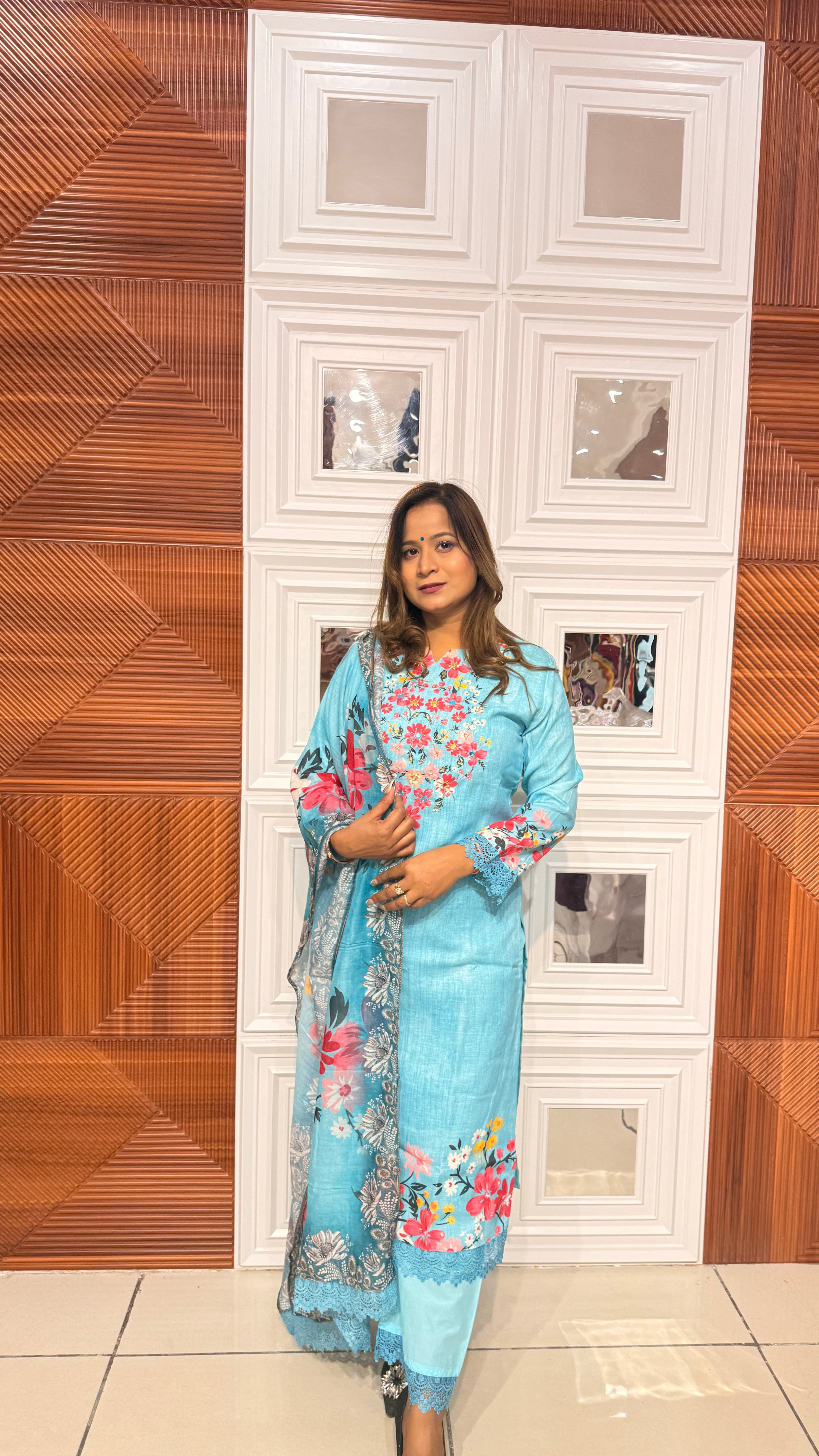 Crafted in soft, flowing fabric with delicate detailing, this outfit exudes quiet luxury.