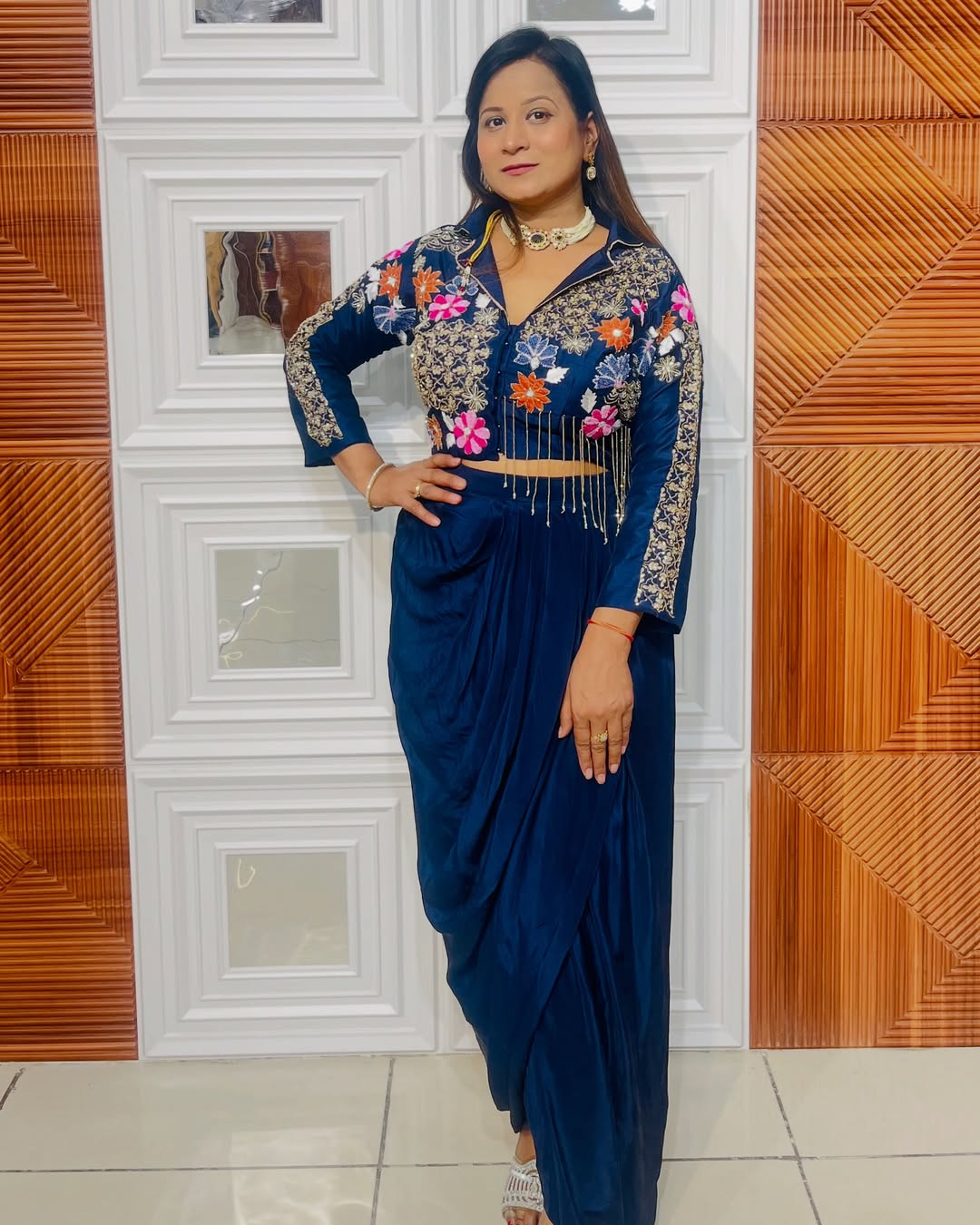Crafted in soft, flowing fabric with delicate detailing, this outfit exudes quiet luxury.